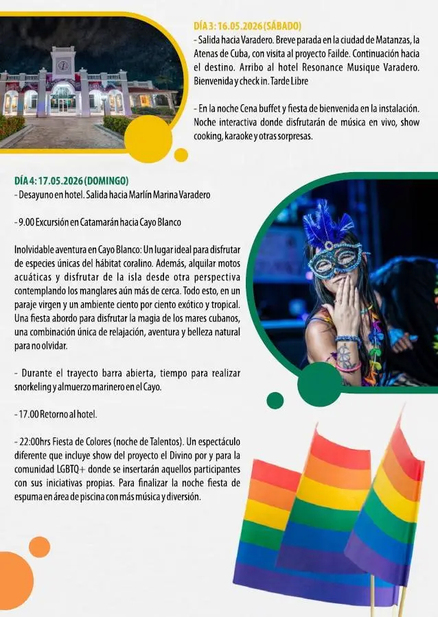La iniciativa será un encuentro pensado especialmente para la comunidad LGTBIQ+, aunque sus organizadores han subrayado que está abierto a todas las personas, sin distinción, con el propósito de ofrecer una experiencia auténtica y diversa en el pais caribeño.